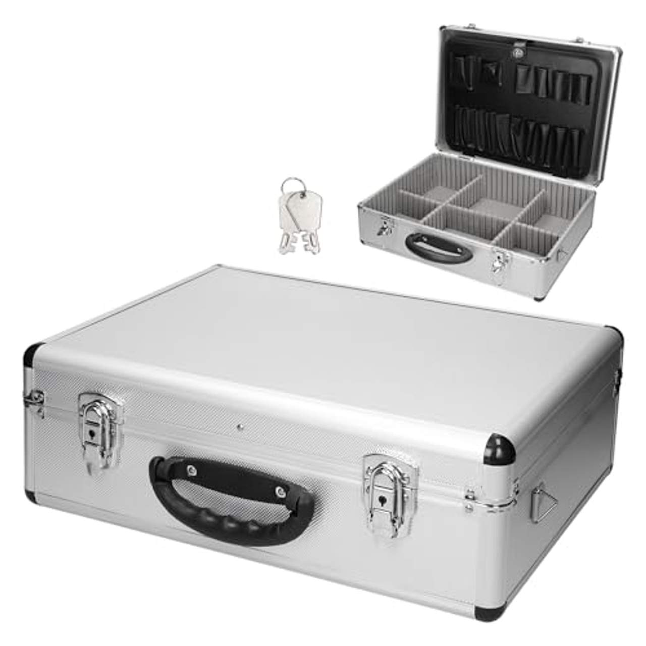 - Langlebiges Design: Der Aluminiumkoffer ist robust, mit abgerundeten Kanten, einem stabilen Griff und zwei abschließbaren Riegeln für zusätzliche Sicherheit auf der Straße.