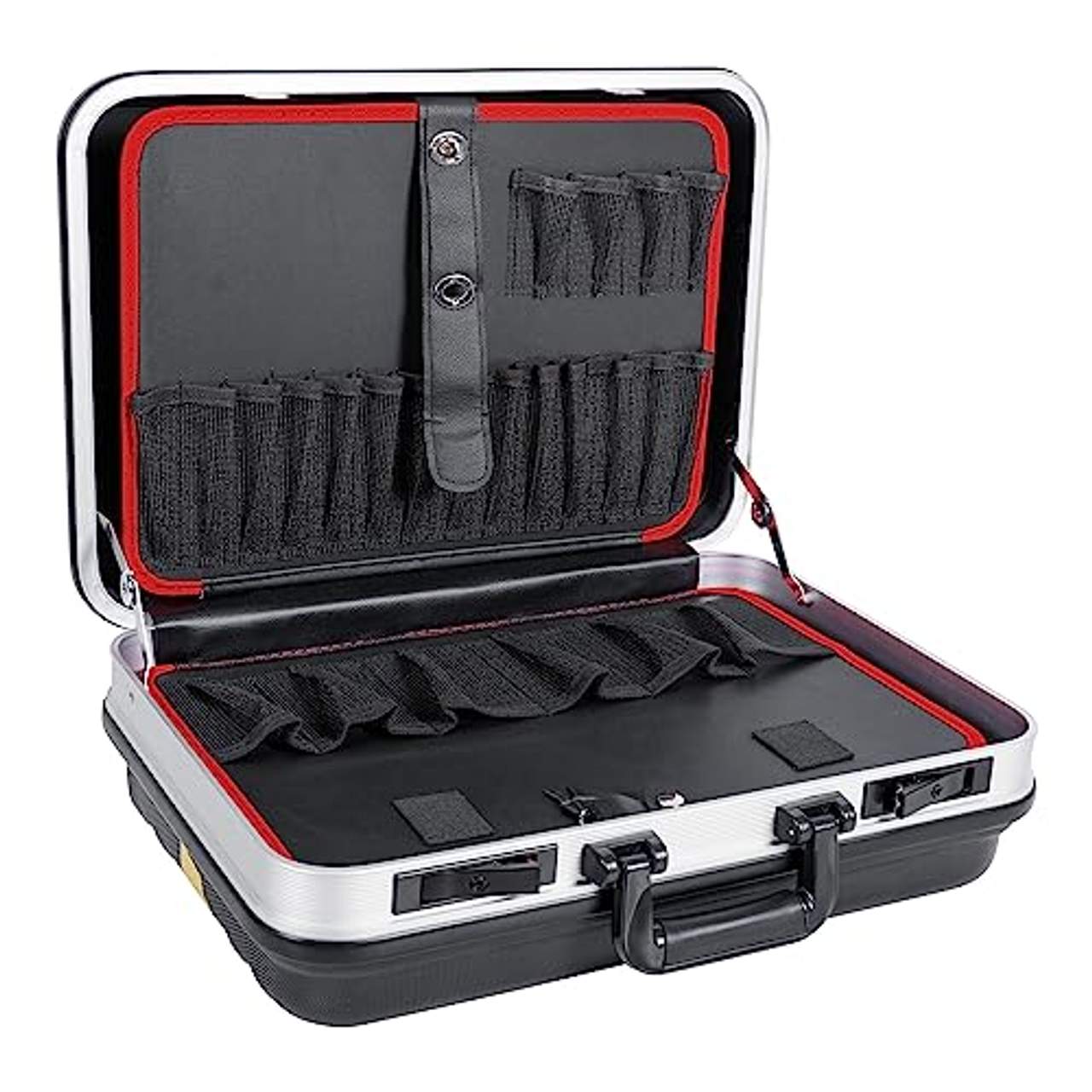 - Sicherheit: Die Deckelverriegelung des Koffers bietet zusätzlichen Schutz für gute und hochwertige Werkzeuge während des Transports und sorgt dafür, dass sie sicher aufbewahrt werden.