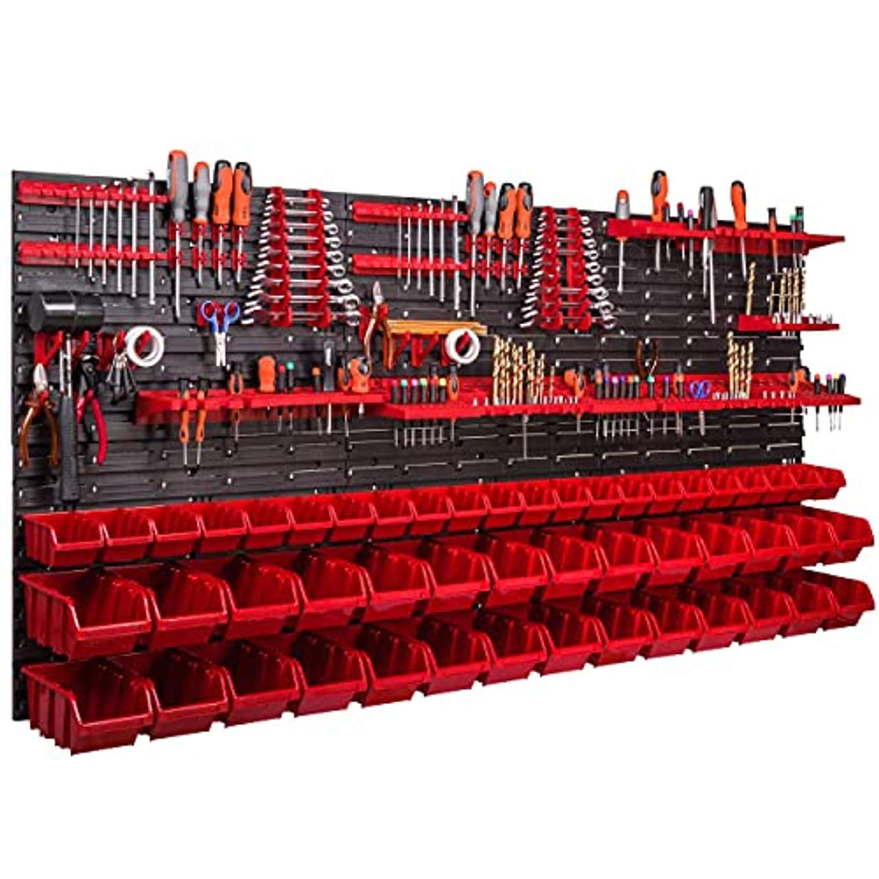 Die Werkzeugwand 1728 x 780 mm Stapelboxen Werkzeughalter Wandplatte von botle ist eine hervorragende Option für die Organisation von Werkstatträumen. Wir schätzen vor allem die robuste Bauweise gepaart mit Funktionalität, die eine anpassbare Aufbewahrungslösung mit viel Platz bietet. Die zweiundzwanzig kleinen und achtundzwanzig großen, leuchtend roten Stapelboxen aus strapazierfähigem Kunststoff sind stoßfest und können unter verschiedenen Bedingungen eingesetzt werden. Der Clou sind die Schlitze, mit denen sich die Boxen leicht anbringen und neu konfigurieren lassen, damit sie übersichtlich und leicht zugänglich bleiben. Die Werkzeugwand verfügt außerdem über verschiedene Werkzeughalter für unterschiedliche Werkzeuggrößen, was die Flexibilität deutlich erhöht. Das Gesamtdesign trägt eindeutig zur Produktivitätssteigerung bei und ist daher eine Top-Empfehlung in deinem persönlichen Werkzeugwand-Test.
