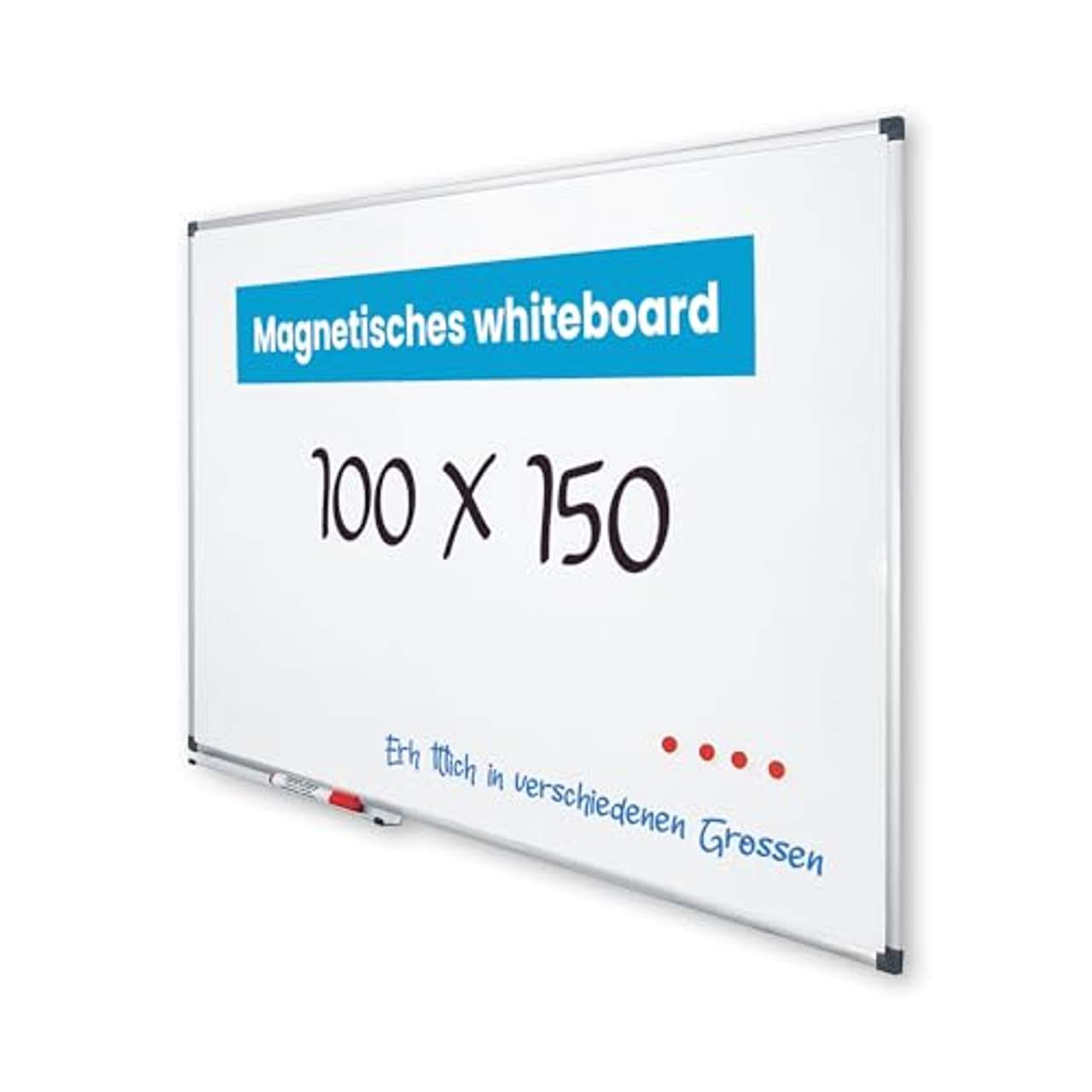 Vivol Eco Magnetic Whiteboard 100x150Whiteboard „Eco“ – magnetisch – 100x150cm Whiteboard „Eco“ – magnetisch – 100x150cm. Die kleine Schreibtafel für Schule, Hörsaal und Büro . Kratzfest und leicht zu montieren . Jetzt einfach online bestellen! Firmen auf Rechnung Schnelle Lieferung Gratis Versand (DE) Kratzfestes, magnetisches und trocken abwischbares Whiteboard Das magnetische Whiteboard besteht aus hochwertigem lackiertem Stahl. Das Beschreiben mit speziellen Whiteboard-Markern ist kinderleicht und die Beschriftungen können mit einem speziellen Wischer, einem trockenen Mikrofasertuch oder Einweg-Wischtüchern mühelos gelöscht werden.Aufgrund des starken Magneteffekts können außerdem Notizen oder Fotos an die Tafel geheftet werden, was die Tafel zu einer großartigen Metall-Pinnwand macht. Ordnungsmanagement leicht gemacht Die herausnehmbare Stiftablage sorgt jederzeit für Ordnung und die Stifte müssen nicht erst gesucht werden.Der Aluminium-Rahmen verhindert Beschädigungen und sorgt dafür, dass keine Tinte an