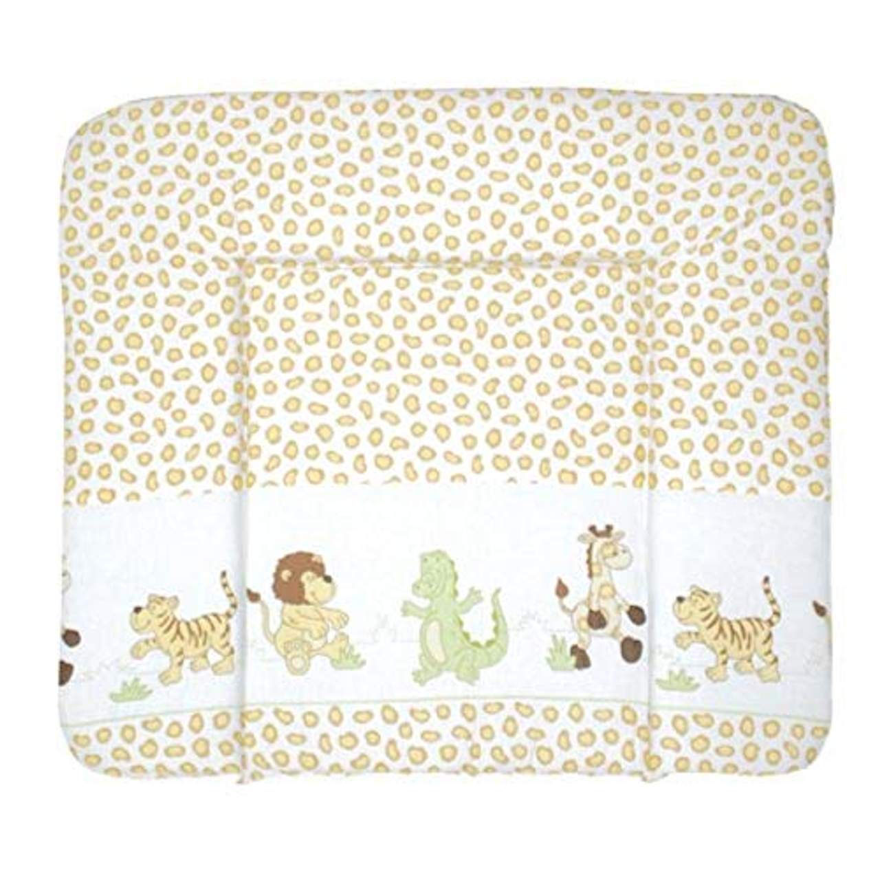 roba Wickelauflage Safari 85 x 75 cmMit dieser weichen Wickelauflage lädt der Zauber Afrikas mit Tiger, Löwe, Giraffe und Krokodil die Kleinsten in eine bunte Safariwelt ein. Auf dieser Unterlage liegt Ihr Nachwuchs beim Wickeln und Pflegen bequem! Der Oberflächenstoff ist besonders hautfreundlich und anschmiegsam für Ihr Baby.Wickelunterlage aus Baumwollpolyestergemisch und phtalatfreier PU-Beschichtung. Die Wickelauflage ist für komfortables und bequemes Liegen beim Wickeln und Pflegen weich gepolstert. Der 3-seitig erhöhte Rand sorgt für mehr Sicherheit und Geborgenheit. Die Maße 85 x 75 cm, Höhe ca. 4 cm, sind an die meisten ‚Standardwickelkommoden‘ angepasst. Die Oberfläche der Wickelunterlage ist abwischbar und pflegeleicht. Alle verwendeten Materialien sind schadstoffgeprüft und zertifiziert. Zusätzlich werden regelmäßig während der Herstellung überprüft. Sie sind 100% Pvc- und phthalatfrei. Die Wickelauflage ist in vielen verschiedenen Farben erhältlich, z.B. In den roba Designs Adam und Eule, Liebhabär, Tierfreunde, uvm.