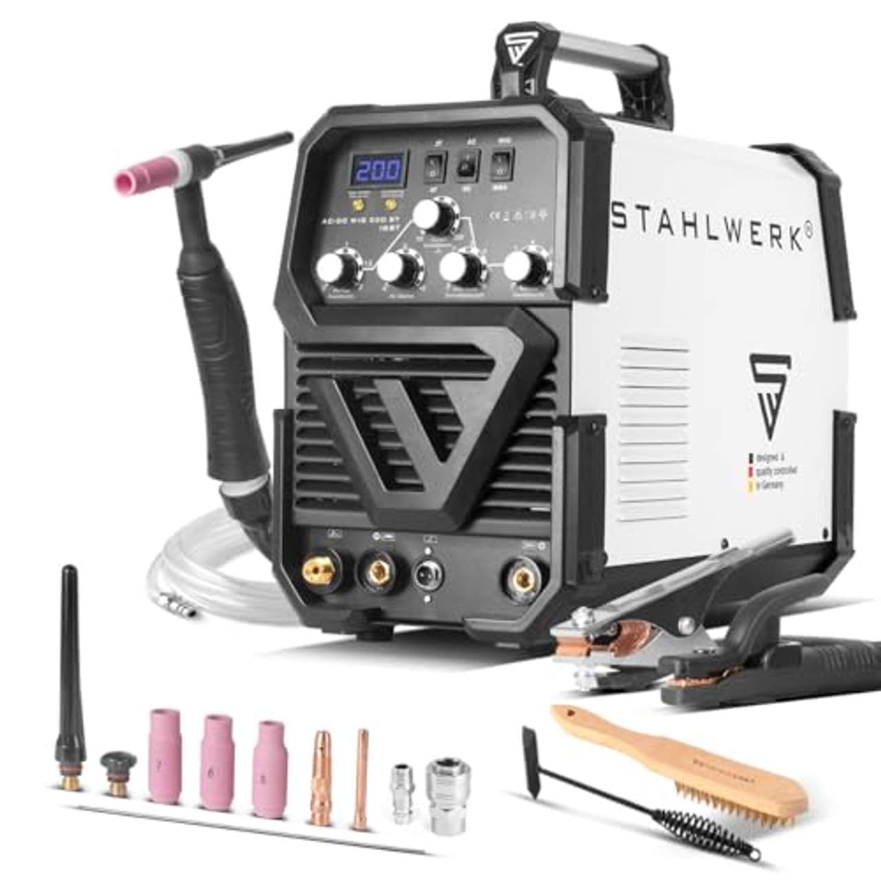 - Professionelle Qualität: Der STAHLWERK 200 ST IGBT Pulse wird mit einem professionellen WP-26 Schlauchpaket mit 4,5 Metern und einer 5-Jahres-Garantie auf Schweißgeräte & Plasmaschneider vom Hersteller geliefert. Darüber hinaus bietet das Unternehmen technischen Support und Service auch außerhalb der Garantiezeit sowie Produkttests und Testschweißen/-schneiden vor Ort, um die Qualität für die Kunden zu sichern.