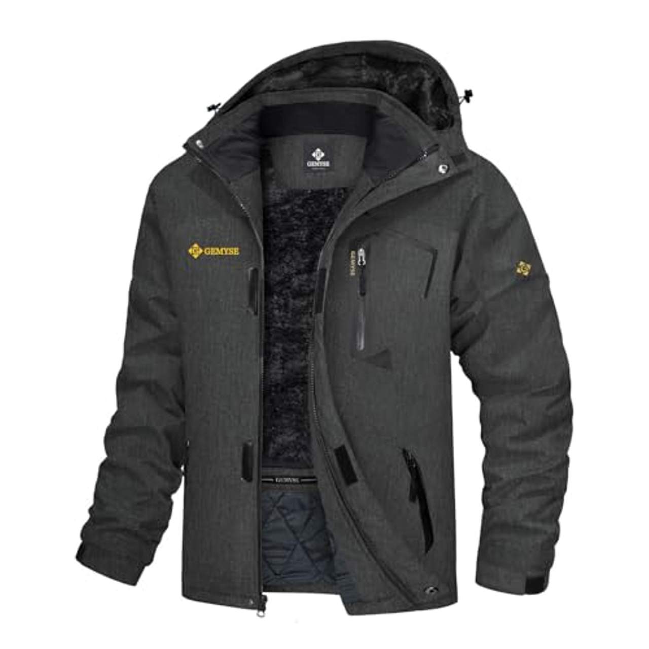 Fragen und Antworten zu GEMYSE wasserdichte Skijacke für Herren Winddichte Fleece Outdoor-Winterjacke mit Kapuze