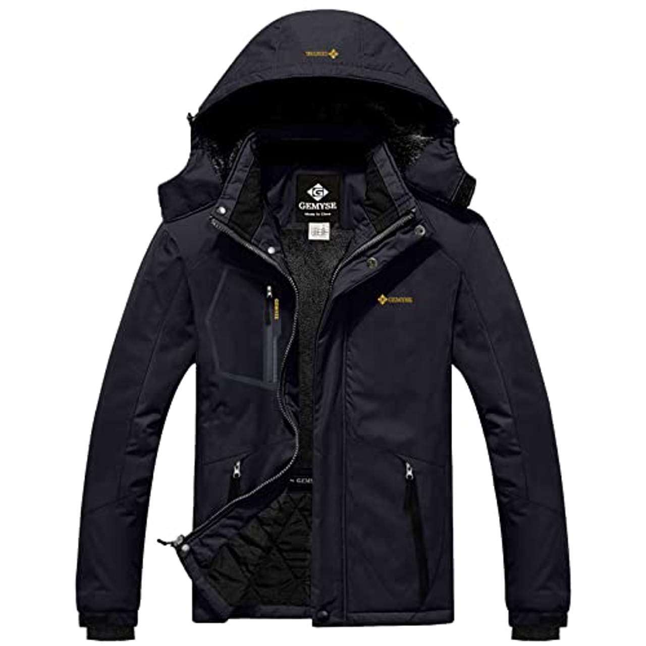 Fragen und Antworten zu GEMYSE wasserdichte Skijacke für Herren Winddichte Fleece Outdoor-Winterjacke mit Kapuze