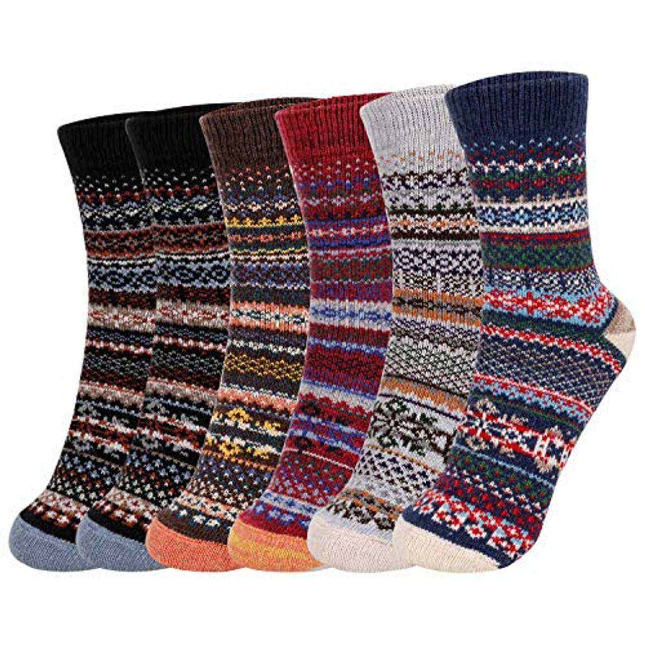 Fixget Damen Winter Wollsocken" ist eine Wintersocke für Damen, die aus warmer Wolle besteht. Sie ist weich und bequem, atmungsaktiv, abriebfest, feuchtigkeitstransportierend und desodorierend. Die Länge der Socken entspricht der Größe 4,5 bis 7 UK (Größe 36 bis 40 EU). Der trendige Vintage-Stil sorgt dafür, dass sie beim Tragen von Schuhen an ihrem Platz bleiben. Die mehrfarbigen Socken sind langlebig, handwaschbar und maschinenwaschbar. Sie können in verschiedenen Situationen getragen werden, sowohl drinnen als auch draußen, z. B. bei der Arbeit, auf Reisen oder beim Camping. „Fixget“ bietet einen 24-Stunden-Kundenservice.