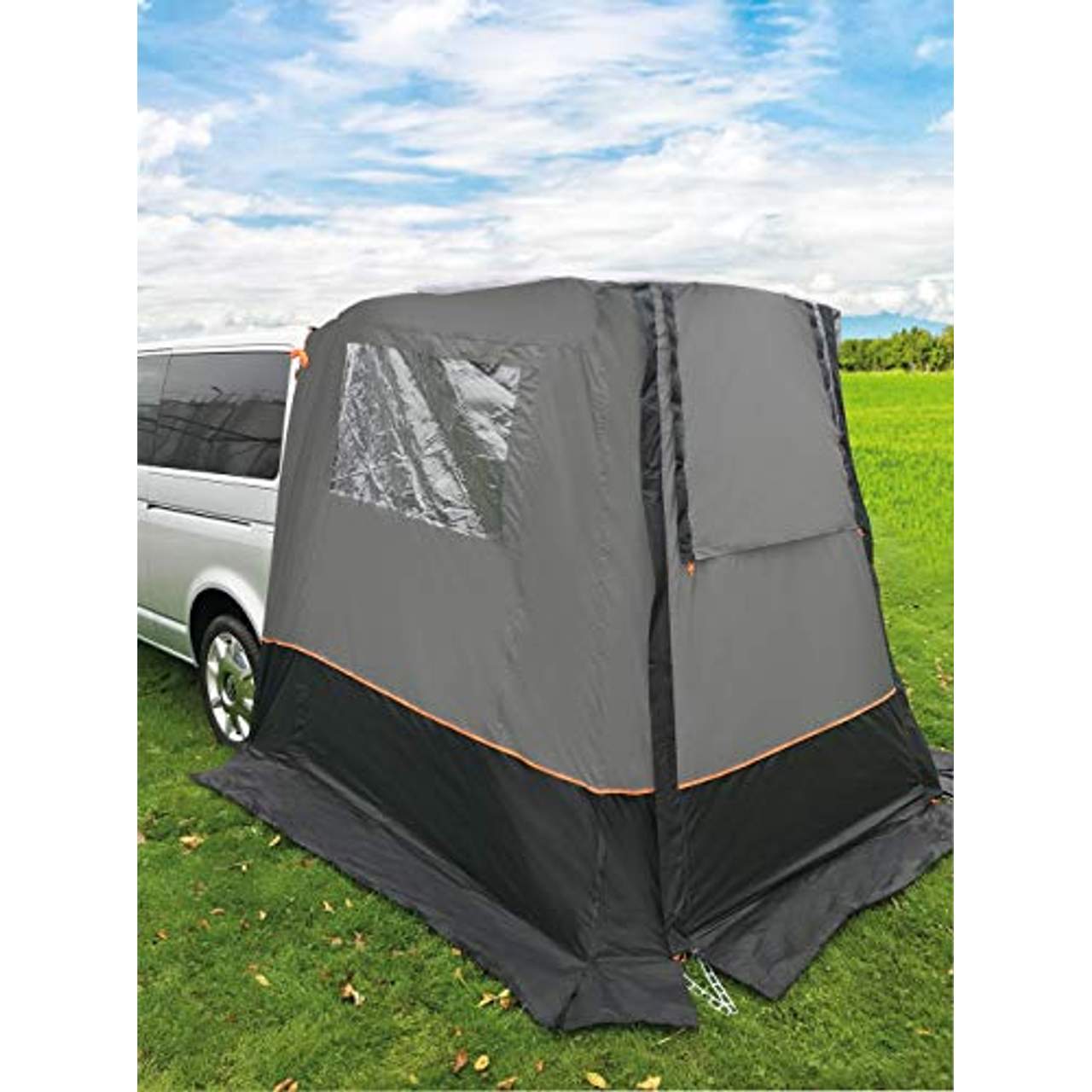 Eurotrail Vorzelte für Wohnwagen Heckzelt Offroad mit Stehhöhe für VW alle ModelleDas Offroad Heckzelt bietet dir viel nutzbaren Platz mit Stehhöhe, direkt am Fahrzeug. Es bietet mehr Raum, der nicht über deine Fahrzeuggröße hinaus gehen muss. Heckklappenzelte sind die ideale Lösung für Park- und kleine Campingplätze. Kein Gestänge, geringes Packmaß und einfacher Aufbau machen das Heckzelt der perfekten Wahl aller Kastenwagenfahrer.Einfach über die Heckklappe gestülpt und nach unter Abspannen. Es bittet zusätzlichen Platz im Heck für ein Fahrrad, Gepäck, oder zum Duschen, Umziehen, Kochen oder Schlafen. Die großen Fenster in der Heckklappe sorgen für Licht und Belüftung.Das Offroad Heckzelt hat eine hintere und seitliche Tür. Inklusiv Tragetasche und Vordachstangen. Geeignet für VW T-5/6 und Citroen Pössl/Campsater Modellen. Art Bus- und Reisevorzelte: Busvorzelt, Farbe: grau, Gestänge: kein Gestänge, Gewicht: 4,3 kg, Material: 100% 185T Polyester, Wassersäule: 3000 mm, Maße (BxHxT): 200 x 200 x 150 cm, Packmaß (LxØ): 70 x 18 cm