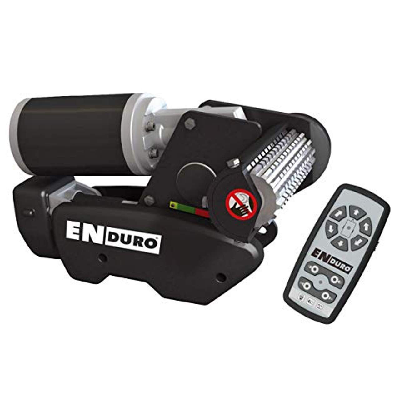 Enduro 11828 Caravan Rangierhilfe EM303ADas Rangieren von Wohnwagen - speziell auf unebenen Untergründen - ist ohne Hilfsmittel eine kraftraubende, gesunheitsgefährdende Angelegenheit. Mit der enduro Rangierhilfe fahren Sie ihren Wohnwagen mühelos per Fernbedienung an seinen Platz. Die Rangierhilfe wird am Rahmen des Wohnwagens oder Anhängers verschraubt und bietet dabei beste Kraftumsetzung durch zwei Reib-Räder.Diese werden beim Einsatz mit Hilfe einer Spindel oder elektirsch gleichmäßig an die Reifen gepresst und von jeweils einem Elektromotor angetrieben. Gelenkt wird dadurch, dass nur der kurvenäußere Motor betätigt wird. Sogar eine Drehung auf der Stelle ist möglich dabei wird das eine Rad vorwärts und das andere rückwärts angetrieben.