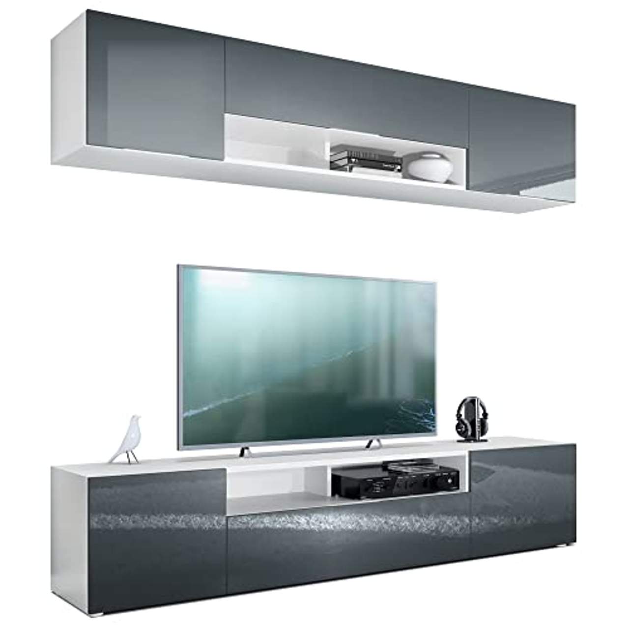 - Stilvolles Design: Die Wohnwand hat einen modernen Look mit weißem matten Korpus und grauen Hochglanzfronten, die ein wohnliches Ambiente schaffen. Es gibt auch viele andere Farbkombinationen zur Auswahl.