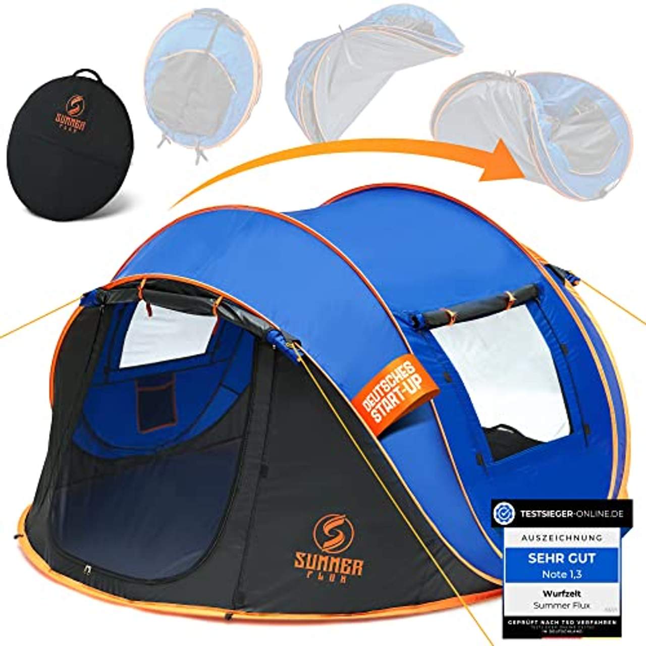 Alle Produkte von Summer Flux werden in Deutschland strengen Qualitätstests und -bewertungen unterzogen, bevor sie auf den Markt kommen. So wird sichergestellt, dass die Kunden von jedem Summer Flux-Produkt, auch vom Wurfzelt für 2-4 Personen, hohe Qualitätsstandards erwarten können.