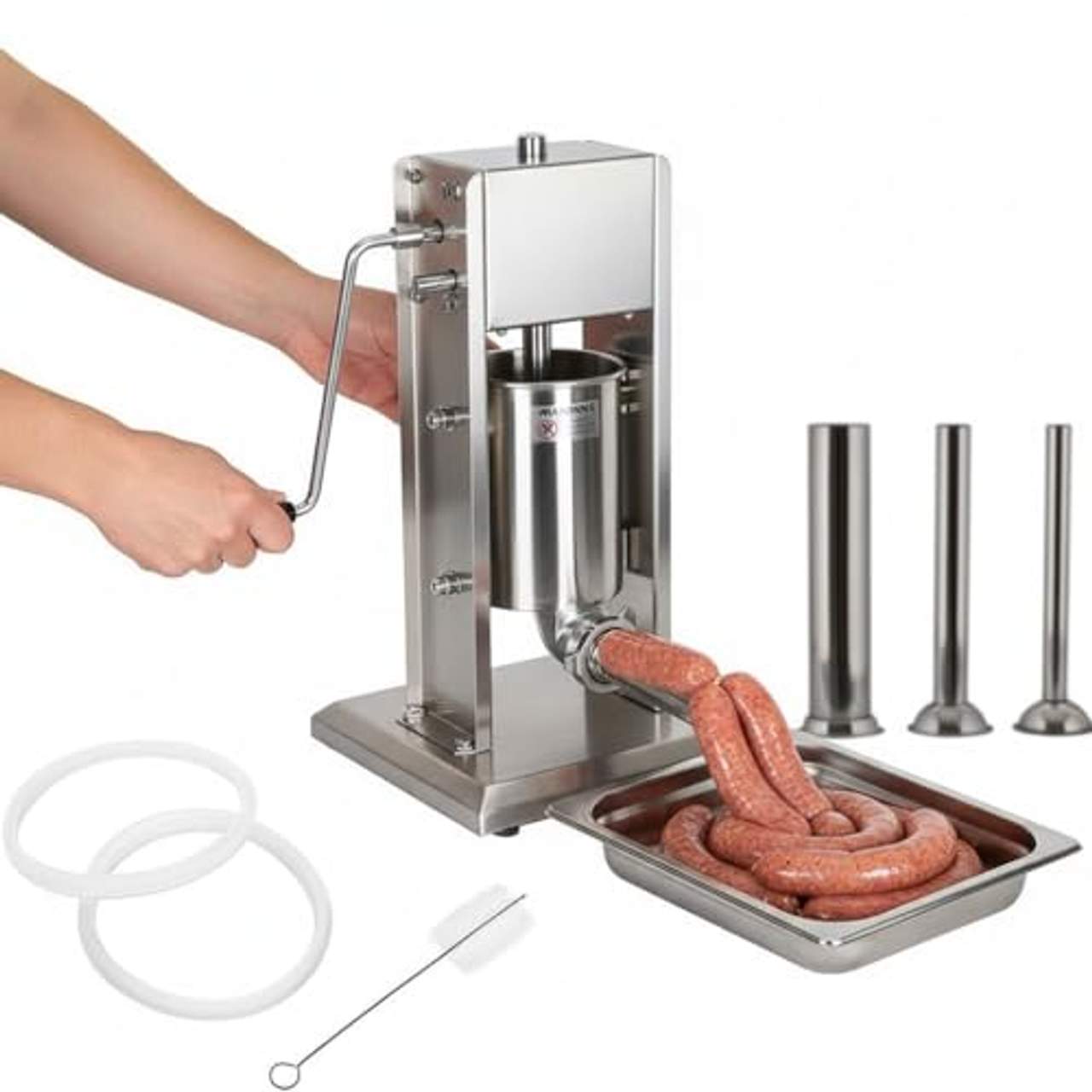 - Inklusive Zubehör: Dieses Produkt wird mit einer Reinigungsbürste, zwei Ersatzdichtungsringen und vier Füllrohren (16mm, 22mm, 32mm, 38mm) geliefert, damit Sie sofort verschiedene Wurstsorten herstellen können!