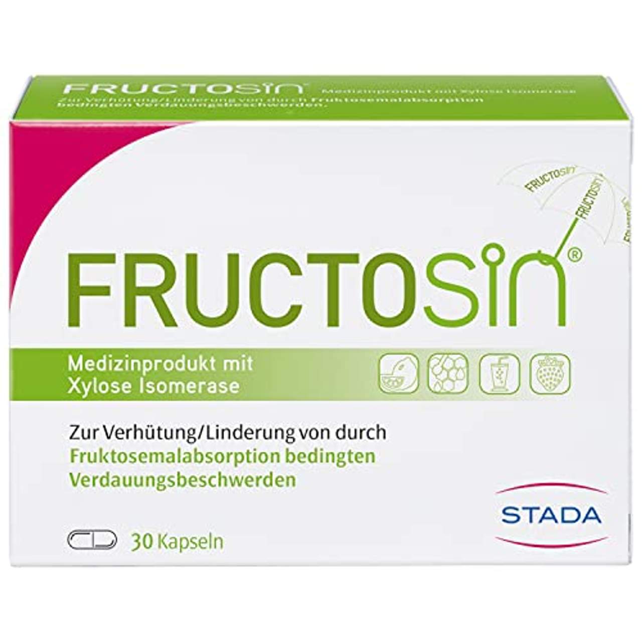 STADA Consumer Health Deutschland GmbH FRUCTOSiN 30 KapselnFRUCTOSiN ist ein Medizinprodukt mit Xylose Isomerase, das im Dünndarm bei bestehender Fruktosemalabsorption Fruktose in leichter resorbierbare Glukose umwandelt. Auf diese Weise trägt es zur Verhütung/Linderung von durch Fruktosemalabsorption bedingten Verdauungsbeschwerden, wie z.B. Übelkeit, Bauchschmerzen, Durchfall oder Blähungen bei. Zur Verhütung/Linderung von durch Fruktosemalabsorption bedingten Verdauungsstörungen Medizinprodukt mit Xylose Isomerase zur Verhütung/Linderung von durch Fruktosemalabsorption bedingten Verdauungsbeschwerden. FRUCTOsin wirkt, indem es im Dünndarm Fruktose in leichter verwertbare Glukose umwandelt. Enthält kein Histamin, keine Laktose, kein Gluten. Frei von Konservierungsmitteln und künstlichen Aromastoffen. Welchen Wirkstoff enthält FRUCTOSiN ? Xylose Isomerase (EC 5.3.1.5) FRUCTOSiN enthält kein Histamin, keine Laktose, kein Gluten und ist frei von Konservierungsmitteln und künstlichen Aromastoffen. Wie wirkt FRUCTOSiN ? Das Monosacharid Fruktose (Fruchtzucker), welches in einer Vielzahl von Lebensmitteln enthalten ist, wird vom Körper im Darm absorbiert. Bei Fruktosemalabsorption ist der Körper nicht in der Lage, in ausreichendem Maße Fruktose im Darm zu absorbieren.Dies führt zu einem Überschuss an Fruktose im Verdauungstrakt. Der bakterielle Abbau von Fruktose führt zu den Symptomen der Fruktosemalabsorption, wie z.B. Übelkeit, Bauchschmerzen, Durchfall oder Blähungen. FRUCTOSiN führt durch seine Verarbeitung das Enzym Xylose Isomerase (Xi) in der aktiven Form als Medizinprodukt dem Körper zu.Durch die Aktivität von XI wird aus Fruktose die leichter verwertbare Glukose erzeugt, die als primärer Nährstoff rasch vom Körper aufgenommen wird. Aufgrund der schnellen Resorption der Glukose aus dem Darm findet eine Rückumwandlung der Glukose in Fruktose nur in geringem Maße statt.Durch die Aktivität der XI wird so die Fruktose im Darm eliminiert, wodurch Symptome der Fruktosemalabsorption vermieden werden. FRUCTOSiN dient nicht als Ersatz für eine ausgewogene und abwechslungsreiche Ernährung und eine gesunde Lebensweise. Warum FRUCTOSiN ? Bei Personen, die unter Fruktosemalabsorption leiden, wird nur eine geringe Menge Fruktose in der Nahrungsaufnahme toleriert (weniger als 25g). Die anzunehmende Ursache hierfür ist ein Defekt im Fruktose-Transportsystem Glut-5. Glut-5 ist für die Absorption der Fruktose im Dünndarm verantwortlich.Wird Fruktose nicht absorbiert, kommt es zu einem bakteriellen Abbau der Fruktose im Dickdarm. Abbauprodukte der Fruktose können dann die Symptome der Fruktosemalabsorption verursachen. FRUCTOSiN wandelt im Darm Fruktose zu der leicht resorbierbaren Glukose um und trägt so zu einer Verhütung/Linderung der Symptome der Fruktosemalabsorption bei. Wie ist FRUCTOSiN anzuwenden? In Abhängigkeit der Gesamtaufnahme sind 15 Minuten vor fruktosehaltigen Mahlzeiten 1 – 2 Kapseln mit Wasser bis zu 3-mal täglich einzunehmen. Wenn die Fruktose den Darm erreicht, sollte die Kapsel bereits aufgelöst und die enthaltene XI aktiv sein. Der Kapselinhalt sollte nicht vor dem Schlucken zerkaut, sondern als Ganzes geschluckt werden.Sollte Ihnen das Schlucken der Kapsel Schwierigkeiten bereiten, können Sie die Kapsel auch öffnen und den Inhalt umgehend und unzerkaut mit etwas Wasser einnehmen. In Abhängigkeit der gesamten Fruktoseaufnahme pro Tag sind maximal 6 Kapseln einzunehmen. Sie sollten individuell austesten, welche Menge FRUCTOSiN für Sie ausreichend ist. Diese hängt insbesondere von der persönlichen Empfindlichkeit gegenüber Fruktose sowie dem Fruktosegehalt und der Zusammensetzung der verzehrten Speisen bzw. dem verzehrten Getränk ab.Wichtige Hinweise FRUCTOSiN ist nicht für Personen mit hereditärer (vererbter) Fruktoseintoleranz geeignet. Diabetiker müssen bei Verwendung von FRUCTOSiN den Fruktosegehalt in Lebensmitteln als Glukose berechnen und dürfen FRUCTOSiN nur unter ärztlicher Aufsicht einsetzen. Bitte befragen Sie Ihren Arzt vor der Einnahme von FRUCTOSiN ; wenn Sie schwanger sind oder stillen. Kinder und Jugendliche dürfen FRUCTOSiN nur nach Rücksprache mit dem Arzt einnehmen, der die Dosierung individuell bestimmt. Kapseln sollten nicht bei einer bekannten Überempfindlichkeit gegen Xylose Isomerase oder einen der anderen Bestandteile von FRUCTOSiN eingenommen werden.Für Kinder unzugänglich aufbewahren. Kühl und trocken lagern. Was ist Fruktose? Bei Fruktose handelt es sich um Fruchtzucker, eine Zuckerform, die natürlicherweise in Obst und Gemüse, in handelsüblichem Haushaltszucker sowie in zahlreichen industriell verarbeiteten Lebensmitteln vorkommt.Welche Lebensmittel enthalten Fruktose? Fruchtzucker ist nicht nur in verschiedenen Obst- und Gemüsesorten enthalten, sondern in zunehmendem Maße auch in industriell gefertigten Lebensmitteln. Als Beispiele können u.a. folgende Lebensmittel genannt werden: Verschiedene Obstsorten wie z.B. Weintrauben, Äpfel, Birnen Verschiedene Gemüsesorten wie z.B. Paprika, Kohlgemüse, Rüben Dörrobst wie z.B. Rosinen, Feigen, Datteln Fruchtsäfte, Fruchtsirup und Limonaden Süßigkeiten mit Fruktose als Süßungsmittel Honig, Fruchtkompotte und Marmeladen Fruktose in industriell hergestellten Lebensmitteln Fruktose schmeckt 2,5-mal so süß wie Glukose und liefert mehr Süße bei weniger Kohlenhydraten. Die Lebensmittelindustrie setzt Fruktose immer häufiger als Flüssigzucker, als sogenannten 'high fructose corn syrup“ ein. Der Grund dafür ist, dass sich Lebensmittel und deren Zutaten in flüssiger Form einfacher und kostengünstiger transportieren und lagern lassen. Ähnliches gilt für die Verarbeitung. Für die Produktion bedeutet dies: geringerer Energieverbrauch, Zeiteinsatz und damit niedrigere Gesamtkosten.