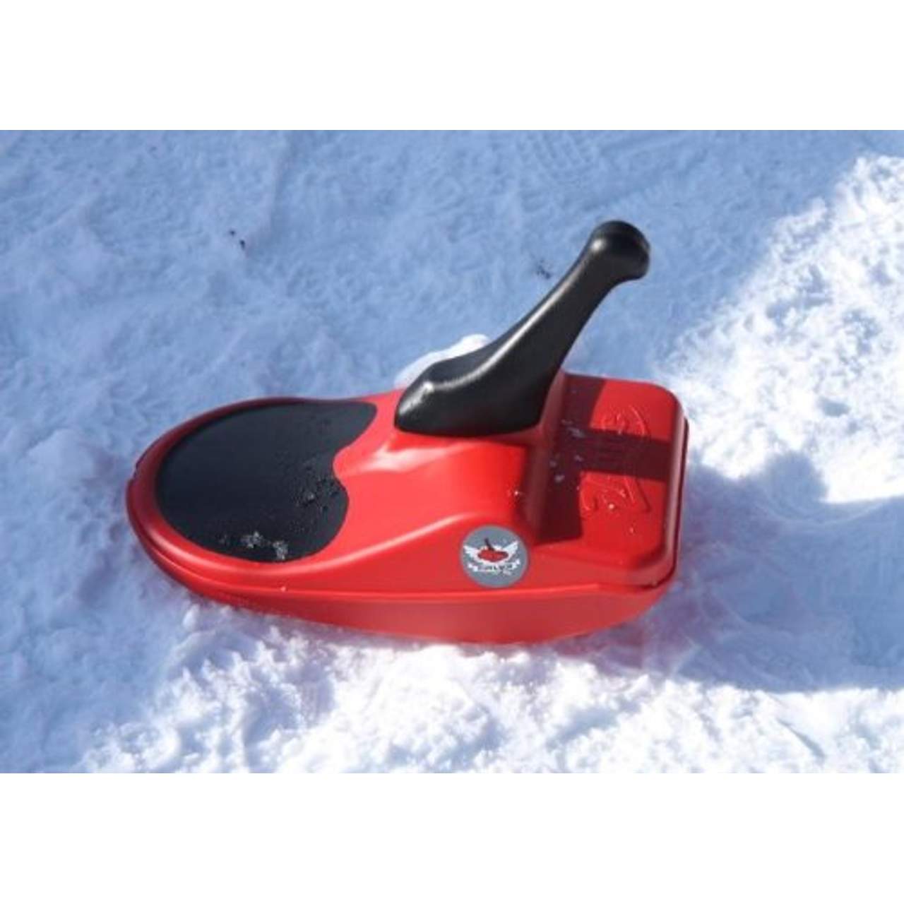 - Sicheres Bremsen: Die Geschwindigkeit des Schlittens kann mit den Beinen reguliert und nach Bedarf gelenkt werden. Zum Bremsen wird einfach das Gewicht nach hinten verlagert und am Haltegriff gezogen, um bei Bedarf schnell zu bremsen. Durch die bodennahe Sitzposition ist die Gefahr des Herunterfallens bei Bergabfahrten ausgeschlossen.