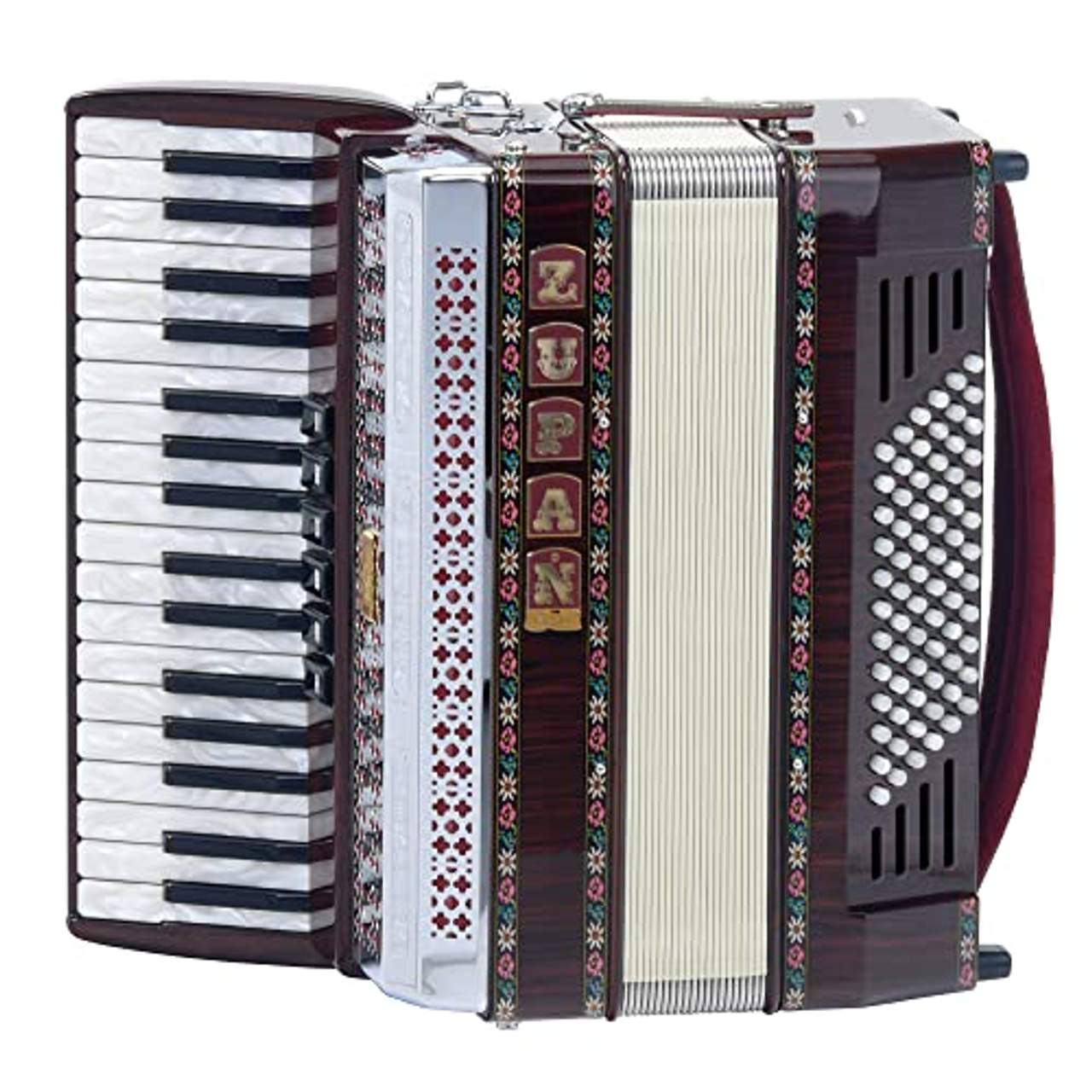 Zupan Alpe III 72 MH Akkordeon Palisander34 Diskanttasten, 3-chörig, 5+1 Register, 72 Bassknöpfe , Leichtgängige Diskantmechanik mit Holztastatur und Perlmuttauflage, Inkl. Trageriemen mit Querriemen, Poliertuch und Luxuskoffer, Gewicht: 9,0 kg,